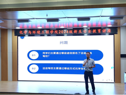 在分享的过程中,黄雪祥详细分析了同学们上当受骗的原因和常见的诈骗套路。他指出,很多骗局利用了人们的信任、贪婪与急于求成的心理,因此保持警觉、理性思考尤为重要。黄老师还提供了一系列实用的防骗技巧,包括如何识别虚假信息、保护个人隐私以及在遇到可疑情况时的应对策略,帮助新生们提高自我保护意识。
