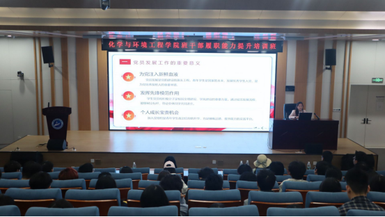 本网讯(通讯员 杨依婷)永利yl23411集团在综合楼102报告厅举办班干部履职能力培训班第二讲,公司党委副书记许守飞、全体辅导员及班长、团支书、学习委员参加讲座。本次培训以“规范党员发展工作,夯实基层组织建设”为主题,由公司党务干事杨依婷担任主讲,围绕党员发展工作的核心要点进行系统讲解。