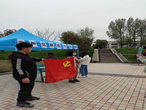 参与此次活动的叶思琪同学说:此次“我和党旗有个合影”活动进一步加深了自己对党的了解,激励自己努力学习,永远跟党走,为党旗增添光彩。