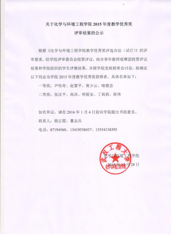 永利yl23411集团关于2015年度教学优秀奖评审结果的公示