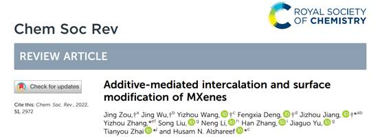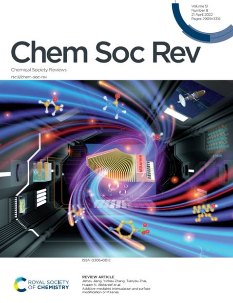 本网讯(通讯员程然)近日,国际顶级学术期刊《Chemical Society Reviews》(IF=54.564)报道了公司邹菁/江吉周教授团队在二维纳米材料领域取得的新进展:《Additive-mediatedintercalation and surface modification of MXenes》。这也是永利yl23411集团官网建校以来发表在该期刊上的第二篇封面成果,第一篇封面成果发表于2019年,第一作者为江吉周特聘教授。