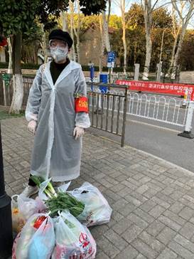 在抗击疫情的决胜阶段,我终于顺利通过了申请,并迅速投入到志愿者的服务工作中。我的主要工作就是为所在的小区居民代购、采办生活物资。每次采购前我会在微信里通知大家,让大家把需要采购的清单发给我。“黄瓜3根、西红柿6个、莲藕2根……”,我会仔细记录下每家的需要,反复核对数量。“蒜不能多,5元钱即可,注意检查是否有发芽;黑胡椒要小包装100g 即可……”,核对完数量后,我会仔细备注物资的要求,特别是一些调料品,我会询问清楚,避免小家庭造成的浪费。大家都夸我是细心的张老师,经常会有人暖心地问我“东西多不多?拿不拿得完?太重了下次再帮我买……”,收到大家我感激的话语和真切的关怀,我都觉得这是对我工作的肯定,这是大家回馈给我的温暖与爱。