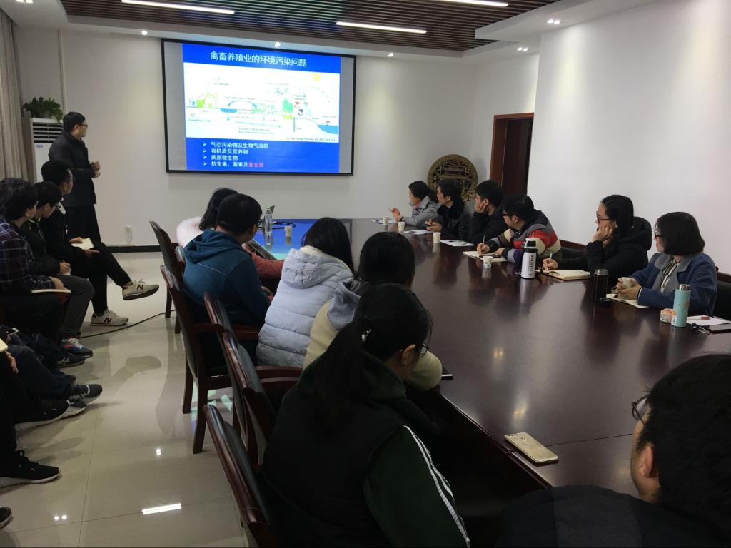 程和发研究员介绍了苯胂酸类饲料添加剂使用的环境风险和公众健康风险,主要包括苯胂酸类饲料添加剂在环境介质中的非生物转化行为研究,以及此类物质在动物组织中累积浓度和居民膳食风险研究二方面的内容。程和发研究员根据相关的研究结果,提出了对家禽养殖的相应环境对策,为在场师生呈献了一场生动形象的高水平学术报告。随后,程和发研究员介绍了北京大学城市与环境公司的一些概况,并欢迎公司师生去北大实验室学习与交流。最后,程和发研究员热情回答了在场师生提出的问题。