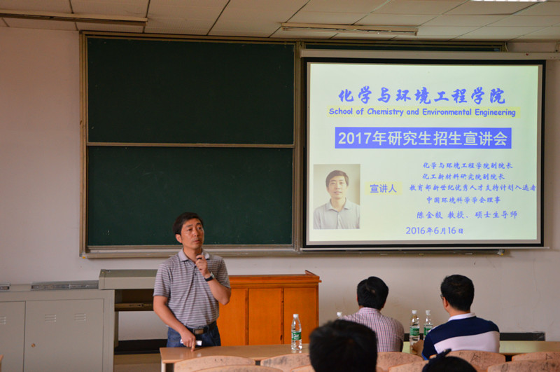 公司副经理陈金毅就化环院2016年考研情况、公司团队力量、导师研究方向、2017年考试科目及公司的研究生奖助政策向大家做了介绍。陈经理最后希望有志于考研的同学把握政策、弄清形势、找准定位、认真备考,并预祝大家考研取得好成绩。