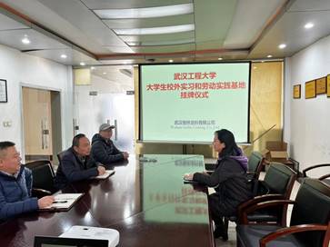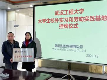 在实习基地挂牌仪式上,化环公司副经理王营茹向企业负责人介绍了公司的化工背景、专业特色以及与涂料相关的科研团队。王经理表示希望通过以实习实践基地建设为契机,与武汉格林涂料有限公司开展多方面的合作交流,为员工提供更多实践锻炼的机会。希望并欢迎武汉格林涂料有限公司来永利yl23411集团官网招聘人才、深化合作。