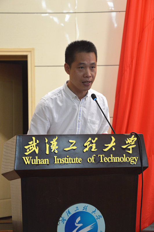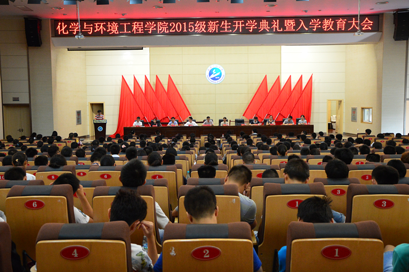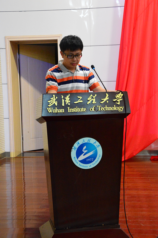 在校员工代表、2013级工业分析2班余志鹏同学和新生代表、2015级环境工程4班黄中蕙同学分别发言。