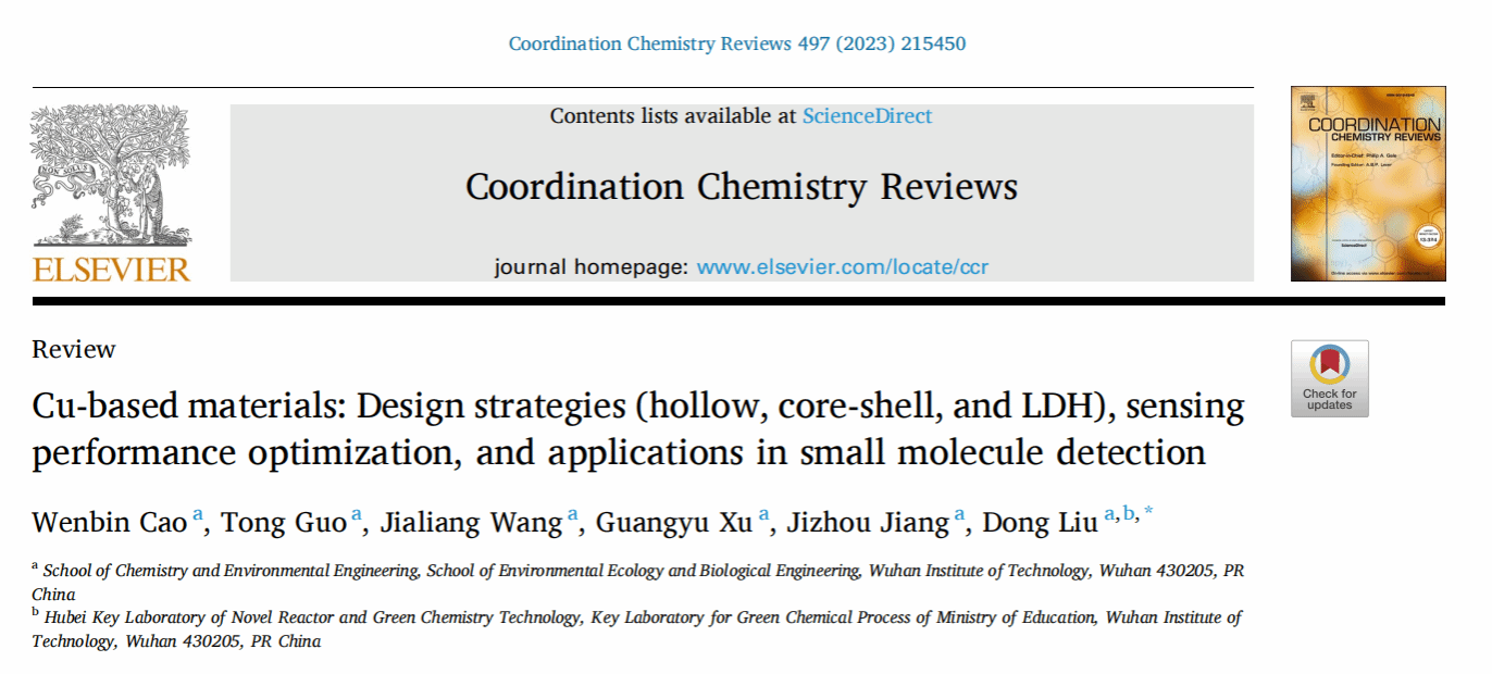 (通讯员 程然)近日,永利yl23411集团教师在国际权威期刊“Coordination Chemistry Reviews”上发表综述论文。该论文系统地介绍了铜基材料的合理设计、传感性能优化及其在小分子检测中的应用,并提出了该领域现存的挑战和未来可期的发展方向。相关成果以“Cu-based materials: Design strategies (hollow, core-shell, and LDH), sensing performance optimization, and applications in small molecule detection”为题在线发表,文章DOI号为10.1016/j.ccr.2023.215450。刘东副教授为论文通讯作者,硕士生曹文彬为第一作者,永利yl23411集团为论文第一署名单位。