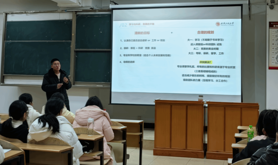 最后贾丰成老师用非常震撼来形容他的讲座,并用七个关键词“视野”“目标选择”“信息差”“职业规划”“科创竞赛”“主观能动性”“责任”对本次成长经验分享会进行了总结,希望同学们学习他志存高远和脚踏实地,学习他主动地投身于科创活动的方向感,学习他成长背后的自我严格要求和对时间的高效管理,学习他做人做事高度的责任感,学习他在团队承上接下中提现的沟通素养。讲座在同学们雷鸣般的持久掌声中结束。(审稿 许守飞)