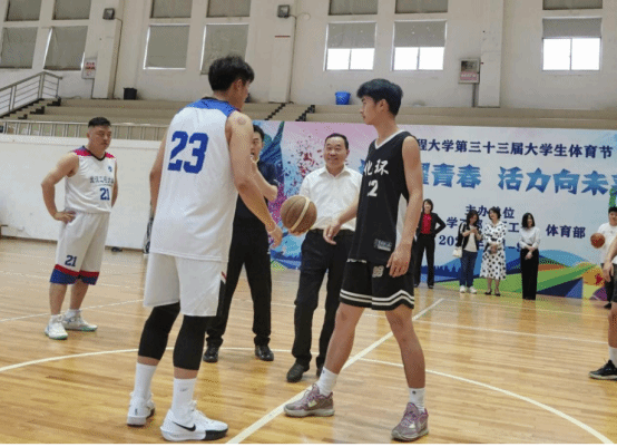 李志旭为员工、教工篮球友谊赛开球。赛场上,双方球员奋力驰骋,抢球、传球、投篮,队友间紧密配合,记分板上的数字不断变化,双方球员们愈战愈勇,上演了一场精彩绝伦的交锋。赛后,双方参赛选手进行了合影留念。