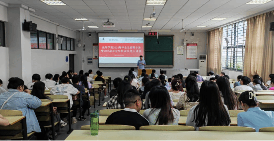 本网讯(通讯员 仝壮)为贯彻落实党中央、国务院关于高校毕业生就业工作的决策部署,进一步深化校企合作、拓宽毕业生就业渠道,推动员工高质量就业工作。按照“走出去”与“请进来”相结合的指导原则。5月10日下午,公司在流芳校区四号教学楼举办了“2024届毕业生专场招聘暨2025届毕业生职业经理人专场讲座”。讲座特邀中国石油化工股份有限公司九江分公司党委组织部(人力资源部)陈水主任主讲,会议由仝壮主持,公司2024部分毕业生和2025届全体毕业研究生参加。
