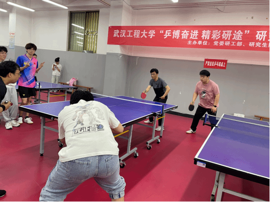 本网讯(通讯员 仝壮)为促进师生之间的相互交流,强化师生体质健康,丰富校园生活。5月30日下午,在流芳校区钟楼一楼的乒乓球馆举行了“乒搏奋进 精彩研途”研究生师生乒乓球比赛。本次活动共有13支队伍,20余名师生展开了激烈的对决。