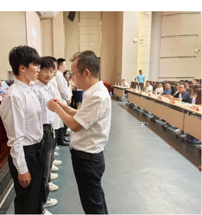 公司领导为2024级本研新生代表佩戴校徽。象征着新生正式成为一名真正的工大人,“格物明理,致知笃行”的校训精神,也将在同学们身上得到传承。