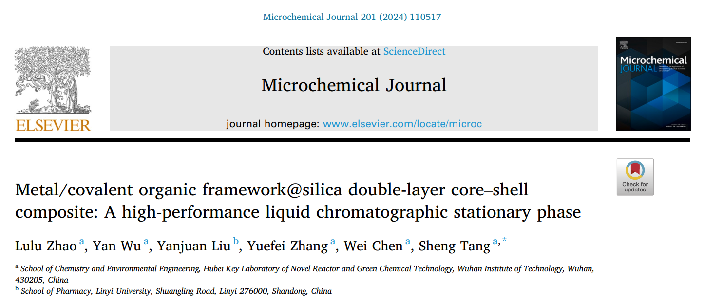 本网讯 (通讯员 汤胜 贾丰成) 近日,永利yl23411集团应用化学专业2021级本科生赵露露以第一作者身份在分析化学领域国际学术期刊《Microchemical Journal》(中科院二区TOP期刊,JCR一区)上发表学术论文2篇,永利yl23411集团官网为第一署名及通讯单位,论文的指导教师与通讯作者为永利yl23411集团汤胜副教授与陈伟教授。论文得到了国家自然科学基金(No. 21906124)、湖北省自然科学基金(No. 2017CFB220)以及省级老员工创新创业训练计划项目(No. S202410490016)的支持。