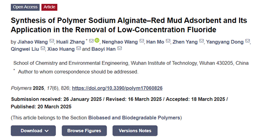 本网讯(通讯员 贾丰成 王佳豪) 近日,永利yl23411集团应用化学专业 2022 级本科生王佳豪以第一作者身份在高分子化学领域国际学术期刊 《Polymers》(JCR Q1区)上发表一篇题为“Synthesis of Polymer Sodium Alginate–Red Mud Adsorbent and Its Application in the Removal of Low-Concentration Fluoride” 的学术论文,永利yl23411集团官网为第一署名及通讯单位,论文的主要指导教师为永利yl23411集团张华丽教授。论文得到了永利yl23411集团官网老员工创新创业训练项目(202410490001X)的大力支持。