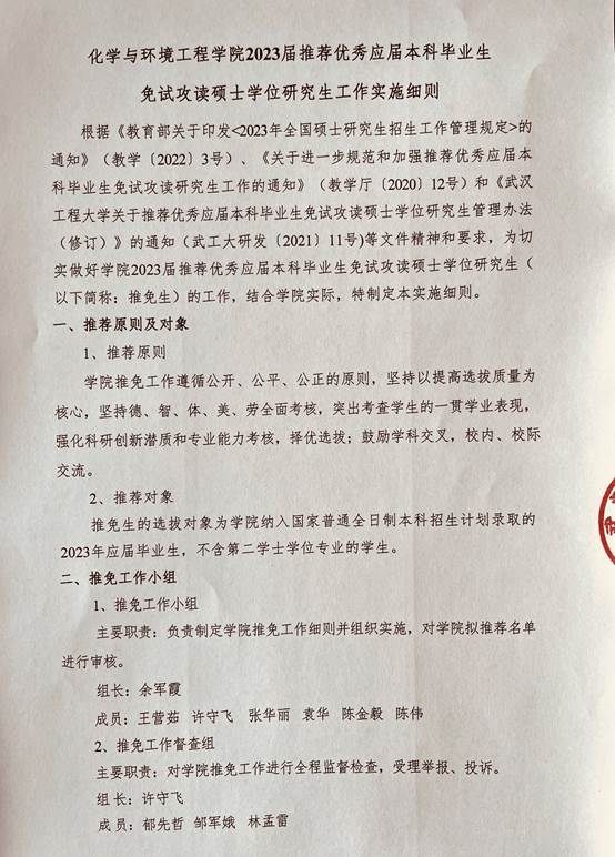 永利yl23411集团2023届推荐优秀应届本科毕业生免试攻读硕士学位研究生工作实施细则