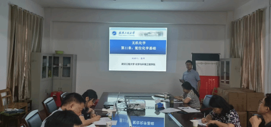 新入职教师樊坤围绕无机化学配位化学基础进行讲授。评委们肯定了樊坤讲授中前呼后应20分钟讲述内容完整同时建议在实际授课时应加强师生互动,培养员工独立思考能力。